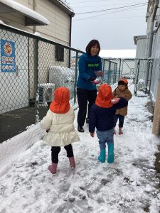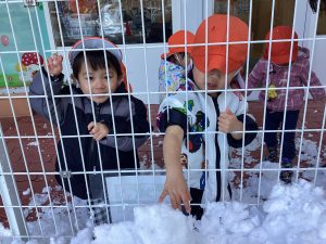 「雪すごいね~」「さむいー」と会話を楽しむ子どもたち♪
