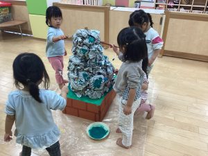 ツリーの形に形成して緑の絵具でぬりぬり~