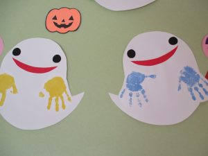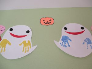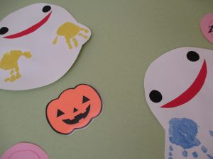 主役のお子様達もハロウィン製作と言う事で手形スタンプお化けに挑戦!