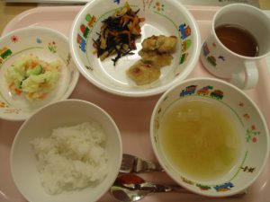 ご飯 味噌汁 タンドリーチキン ポテトサラダ ひじきの炒り煮