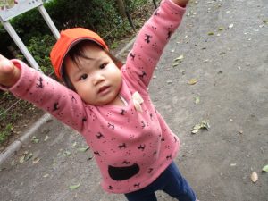 今週は虫を見つけ「ありさ~ん!バイバ~イ!」となんとも微笑ましい姿。