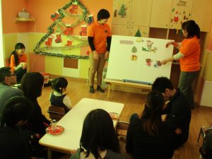 クリスマス会が進むにつれ少しずつ緊張もほぐれアットホームな雰囲気の中、全員参加型で皆の笑顔があふれていました。
