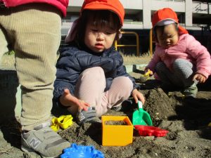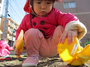 園周辺の公園で初めての砂遊び。