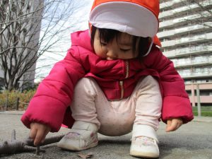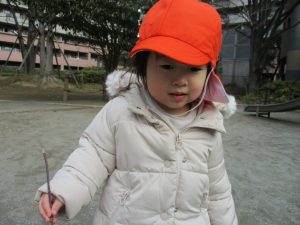 お気に入りの遊具で体を動かしたり、木の枝を使ってみんなでお絵かきタイム。