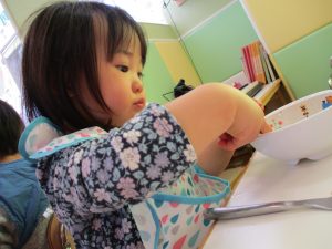 スプーンも上手に使えるし、出来立てホヤホヤだからとーっても美味しいね♪