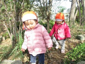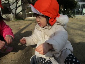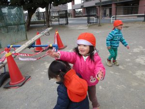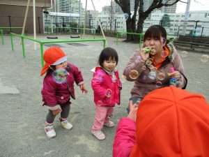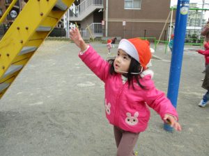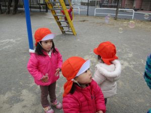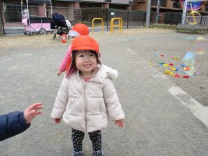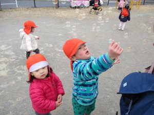 砂遊び、固定遊具、シャボン玉、公園内散策など、寒さに負けずたくさん体を動かしました。
