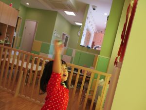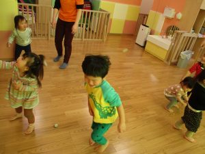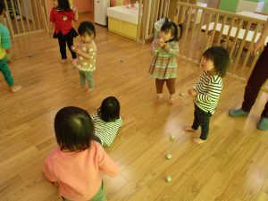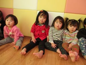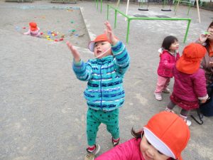 自分の中の「泣き虫鬼」「弱虫鬼」「怒りんぼ鬼」などなど、色々な鬼を退治する意味を込めて子ども達に話をすると、子ども達なりに話を理解した様子で皆楽しそうに「鬼は外~♪福は内~♪」と豆まきを行っておりました。