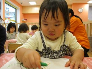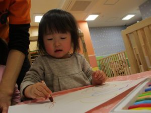 1,2歳児クラスのお友達は「先生〇〇描いてぇ~♪」と思いも上手に伝えられる場面が増えてきました。