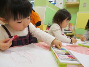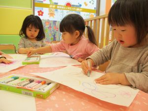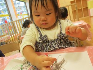 お絵描きも回数を重ねる度に遊びこめるようになってきており子ども達の成長を感じます。
