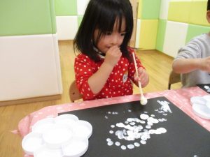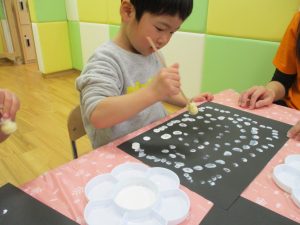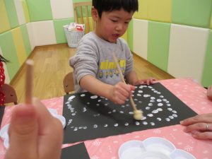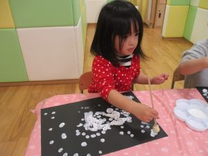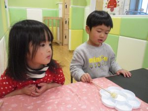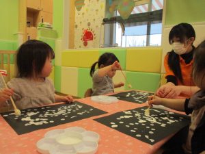 型抜きも保育者と一緒に楽しく行っておりました。