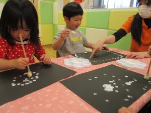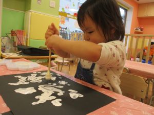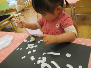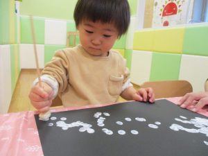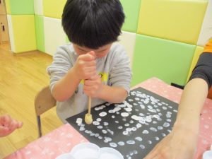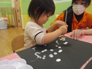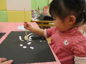 今週は比較的室内で過ごす日が多かったですが冬の製作や粘土遊びを楽しんだり、ボール、フラフープ、マット等で思い切り体を動かしたりと、充実した室内遊びを展開出来たかと思います。