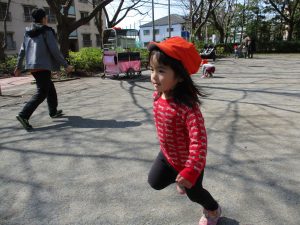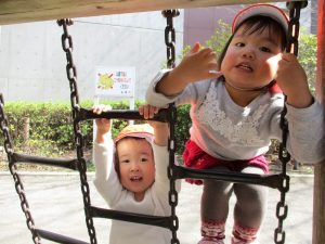 遊具の使い方も上手になってきておりますが、最近は2歳児を中心に皆で行うおいかけっこがブームです。