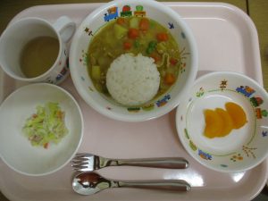 ご飯 カレーシチュー ツナサラダ みかん缶