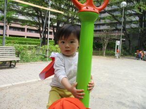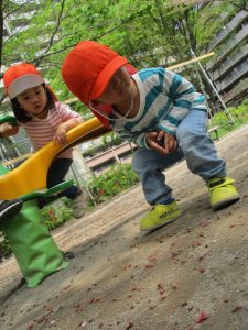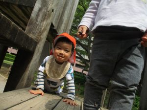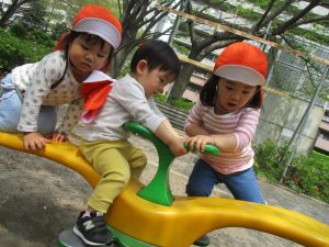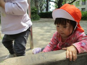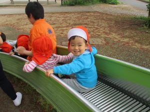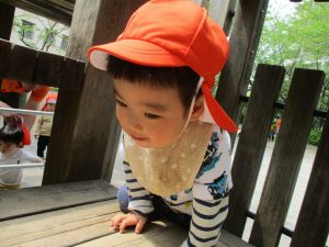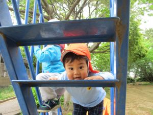 固定遊具や虫探しを通してたくさん体を動かしました。
