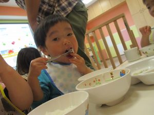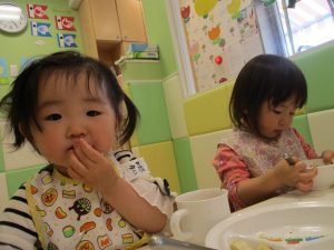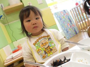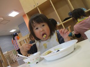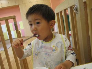 スプーンやフォークの持ち方もスタッフ達の粘り強い指導により日に日に上手になっており、お子様達の成長を強く感じます。