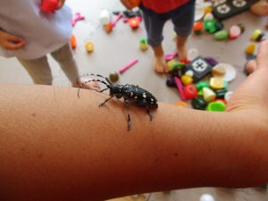 楽しい水遊びの雰囲気に誘われてカミキリムシも谷津園に来園致しました。
