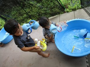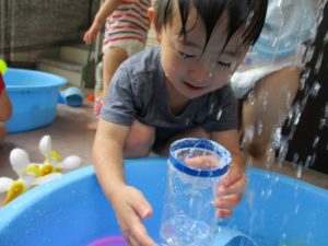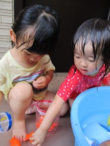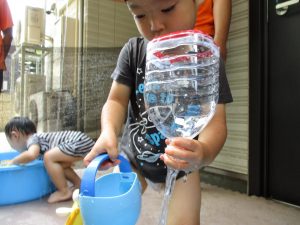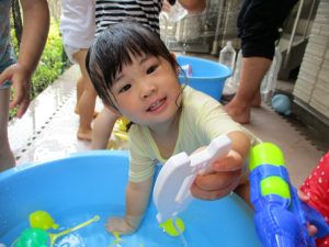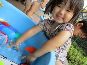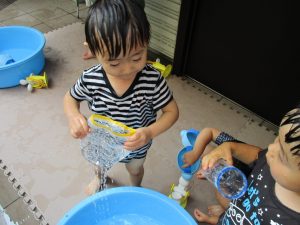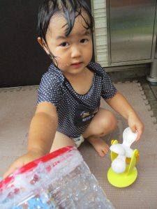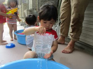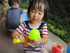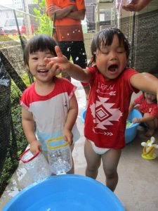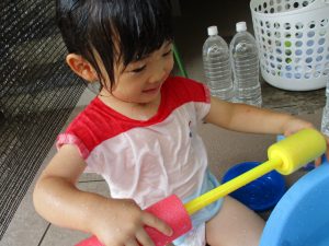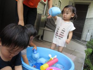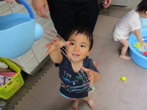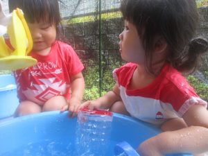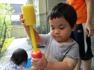 水遊びの始まりと同時に入園したのも何かの縁ですね♪