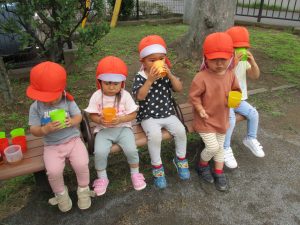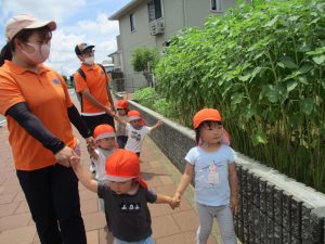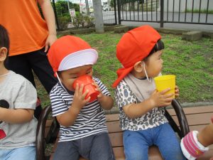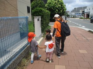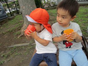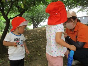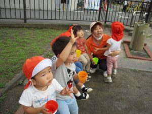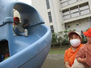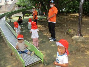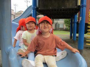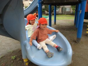 曇り空のお陰で涼しく過ごす事が叶い、全員で5丁目公園までおでかけ♪