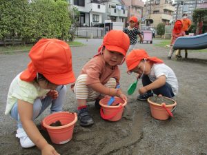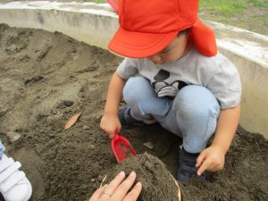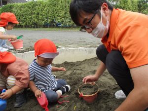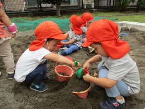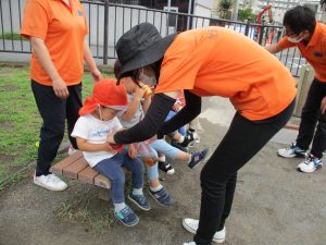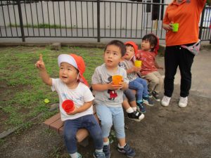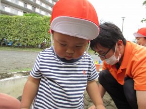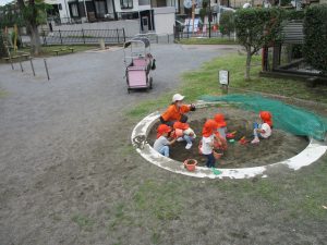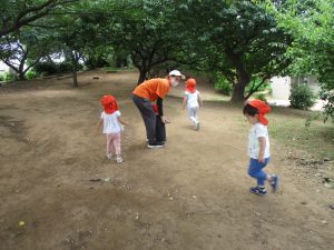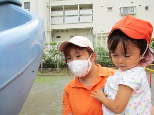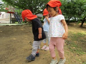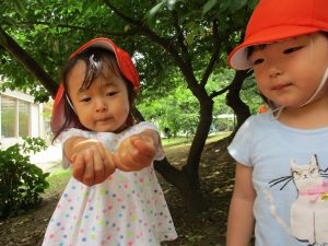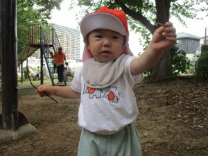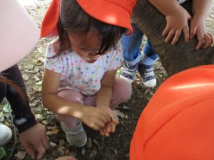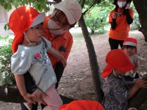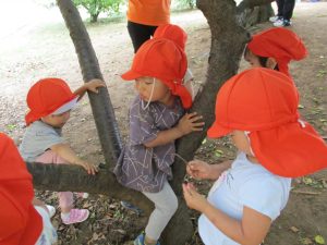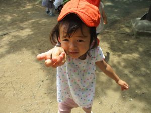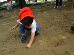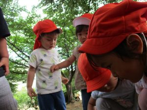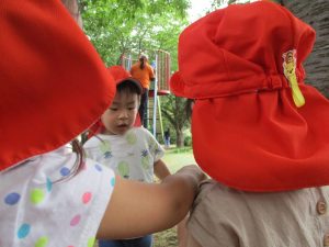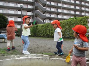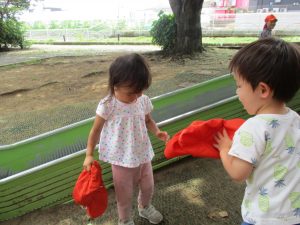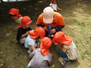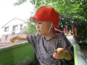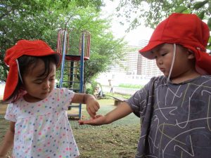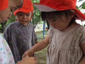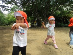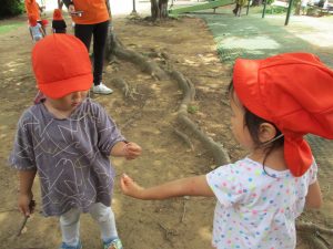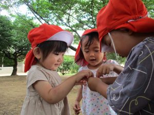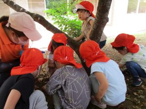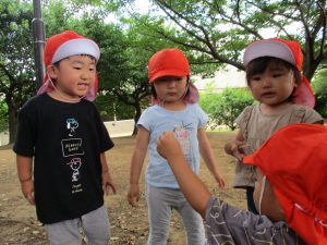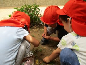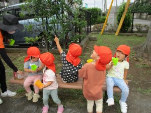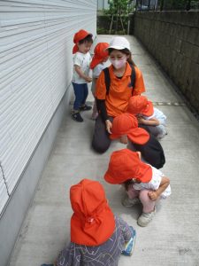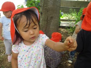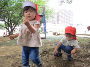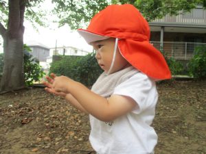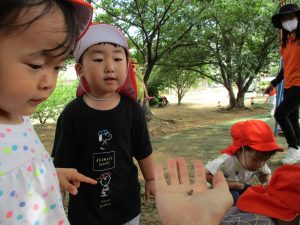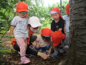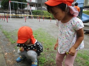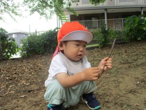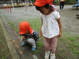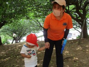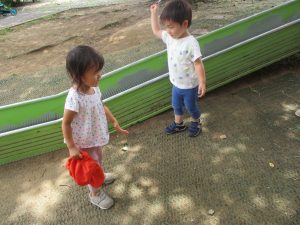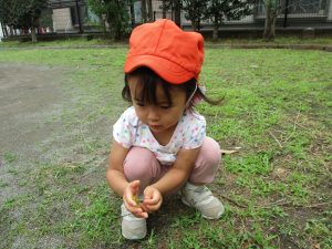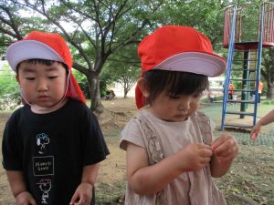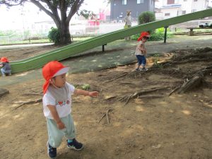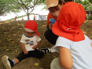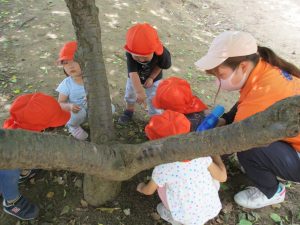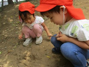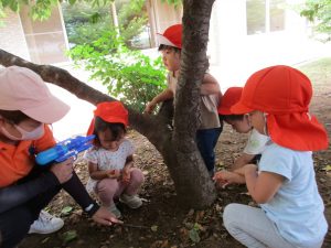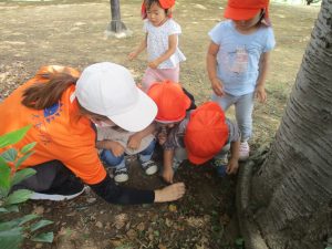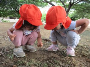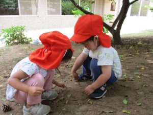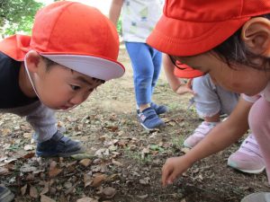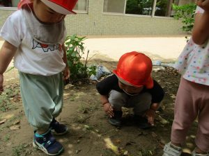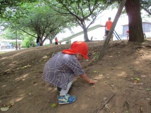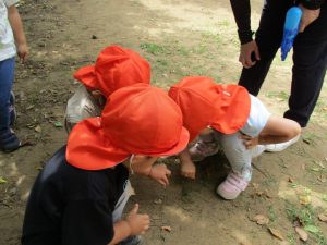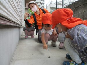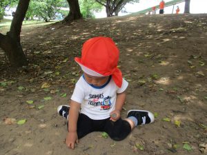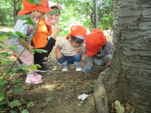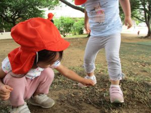虫探しが大流行しているようで、葉っぱの下や遊具のそばを中心に夢中で探しております!