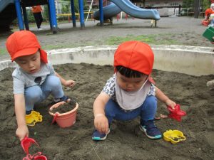 固定遊具や砂場でのままごと遊びを楽しみました!