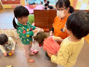 ままごと遊びを楽しんだりサーキット遊びでたくさん体を動かしました。