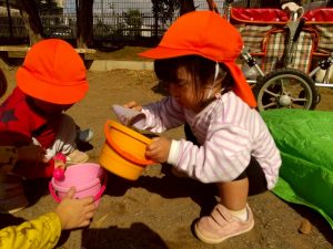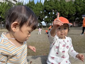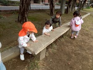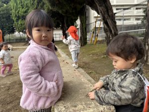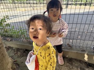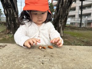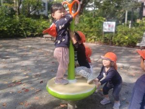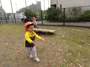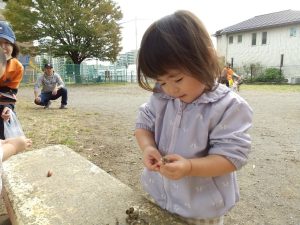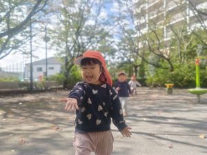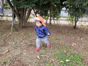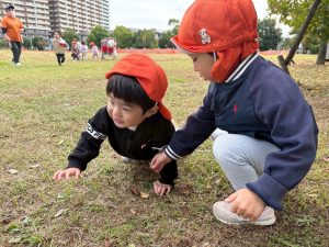 日に日に秋色も濃くなり、園周辺の公園では自然物探しに夢中です。