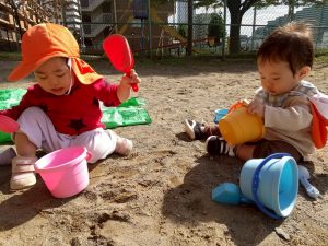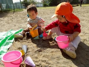 日中は年齢別に分かれて戸外活動を楽しみました。