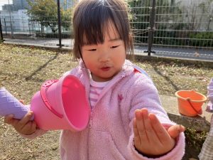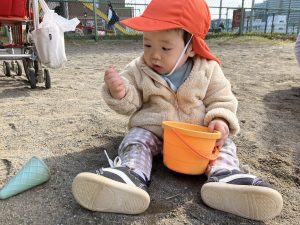 砂場でのままごと遊びや自然物探しを楽しみました。