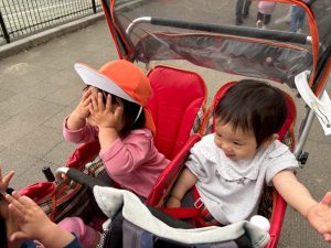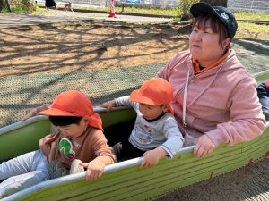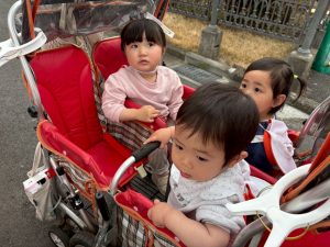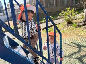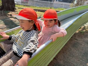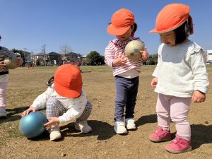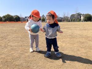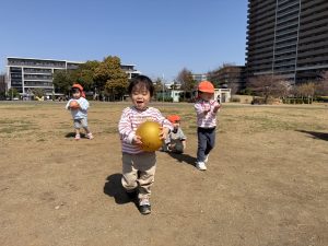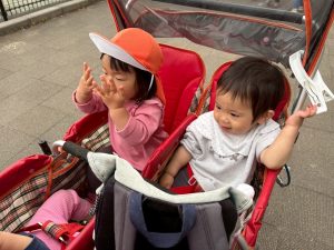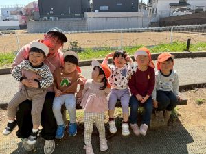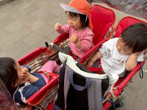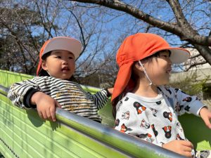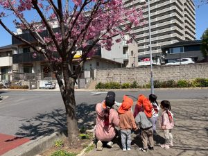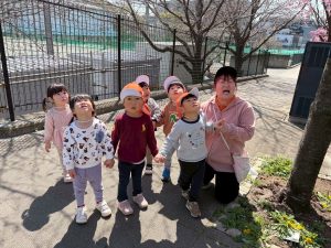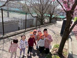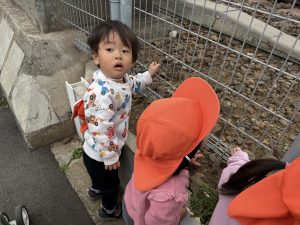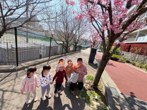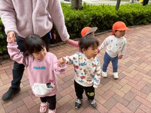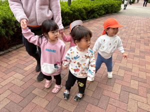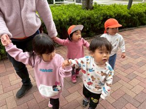 誕生会の後は年齢別に分かれて戸外散歩を行いました。
