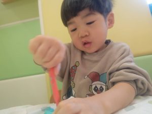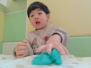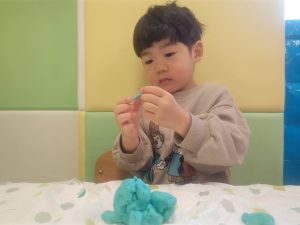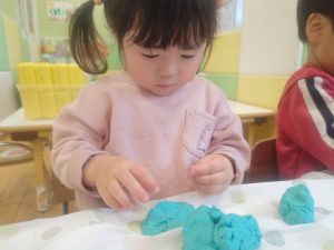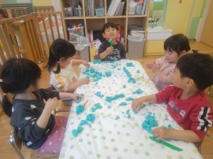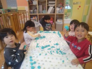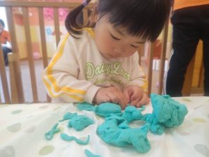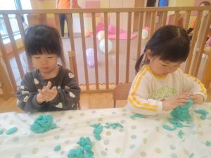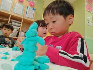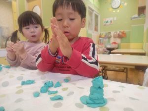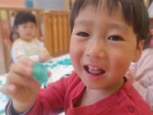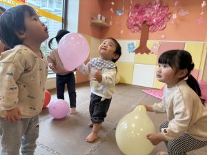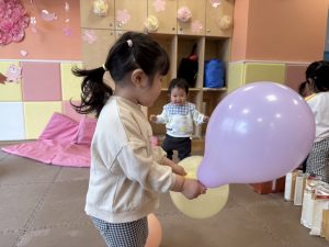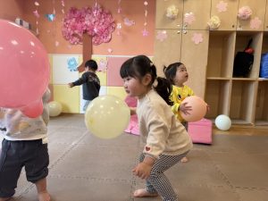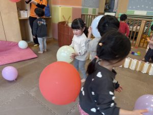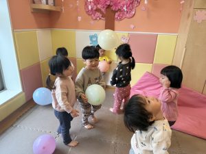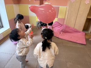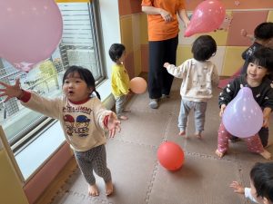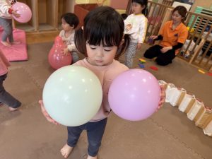 風船を使用してたくさん体を動かして遊んだり粘土遊びを楽しみました。