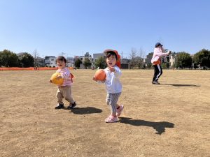 園周辺の公園では固定遊具やボールを使用してたくさん体を動かして遊びました。