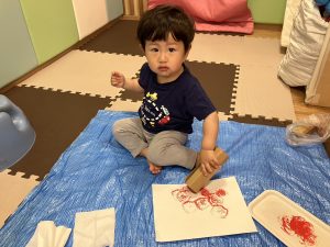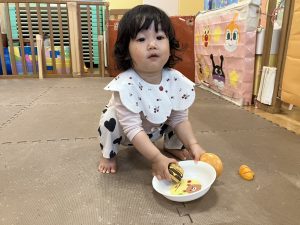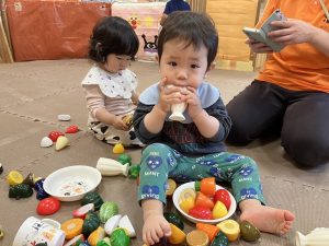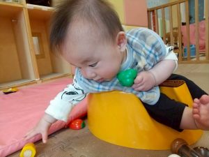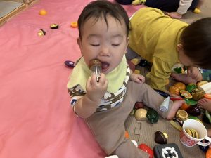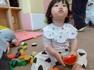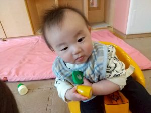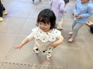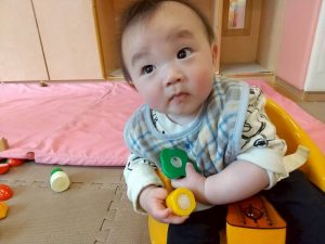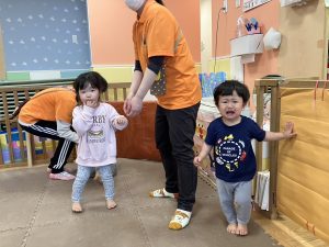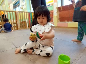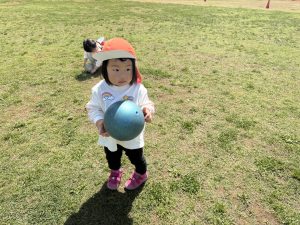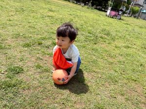 シャボン玉やゴムボールを追いかけてはたくさん体を動かして遊びました。