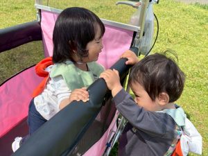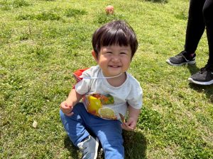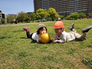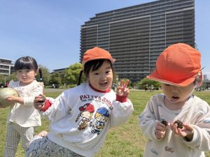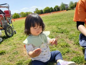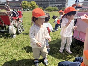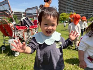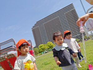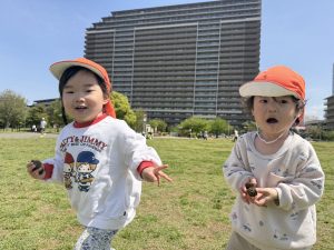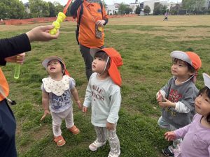 シャボン玉を追いかけてたくさん体を動かしたり公園内の散策を楽しみました。